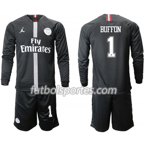 Camisetas Paris Saint Germain BUFFON 1 Jordan Negro Niños Tercera Equipacion 2018/2019 Manga Larga
