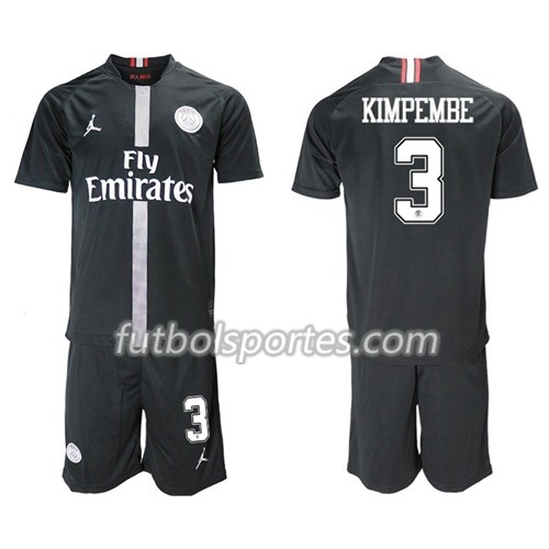 Camisetas Paris Saint Germain Kimpembe 3 Jordan Negro Niño Tercera Equipacion 2018/2019