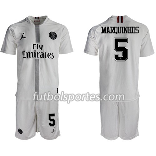 Camisetas Paris Saint Germain Marquinhos 5 Jordan Blanco Niño Tercera Equipacion 2018/2019