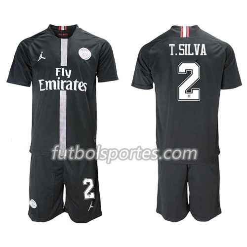 Camisetas Paris Saint Germain T.Silva 2 Jordan Negro Niño Tercera Equipacion 2018/2019