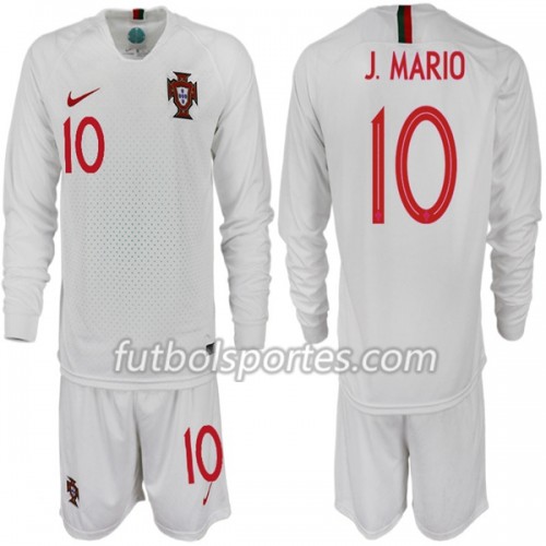 Camisetas Portugal J. MARIO 10 Niño Segunda Equipacion Mundial 2018 Manga Larga