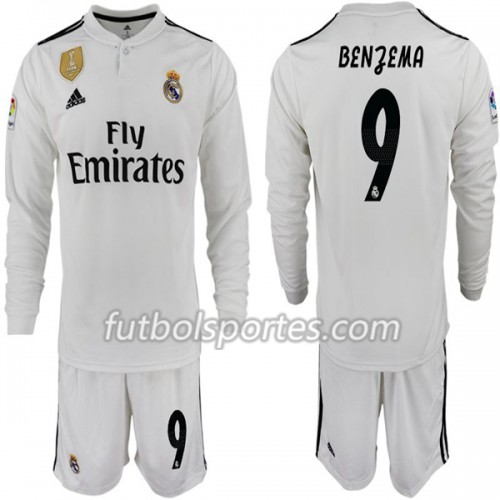 Camisetas Real Madrid BENZEMA 11 Niño Primera Equipacion 2018/2019 Manga Larga