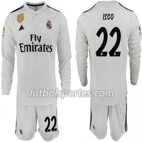 Camisetas Real Madrid ISCO 22 Niño Primera Equipacion 2018/2019 Manga Larga