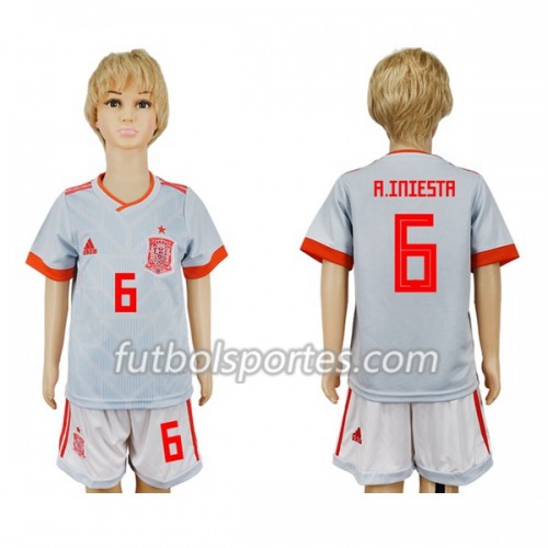 Camisetas España A_Iniesta 6 Niño Segunda Equipacion Mundial 2018