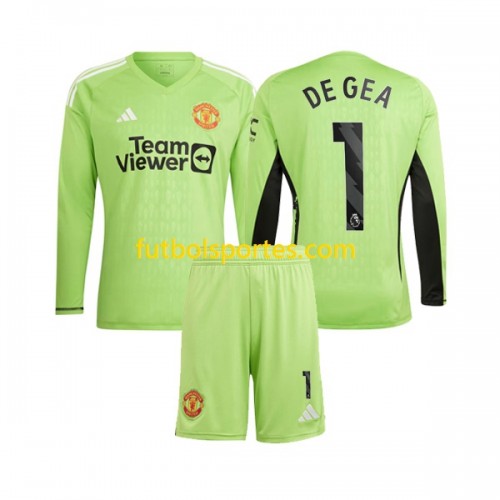 Camiseta Manchester United De Gea 1 Portero Niño Primera Equipación 2023/2024 Manga Larga